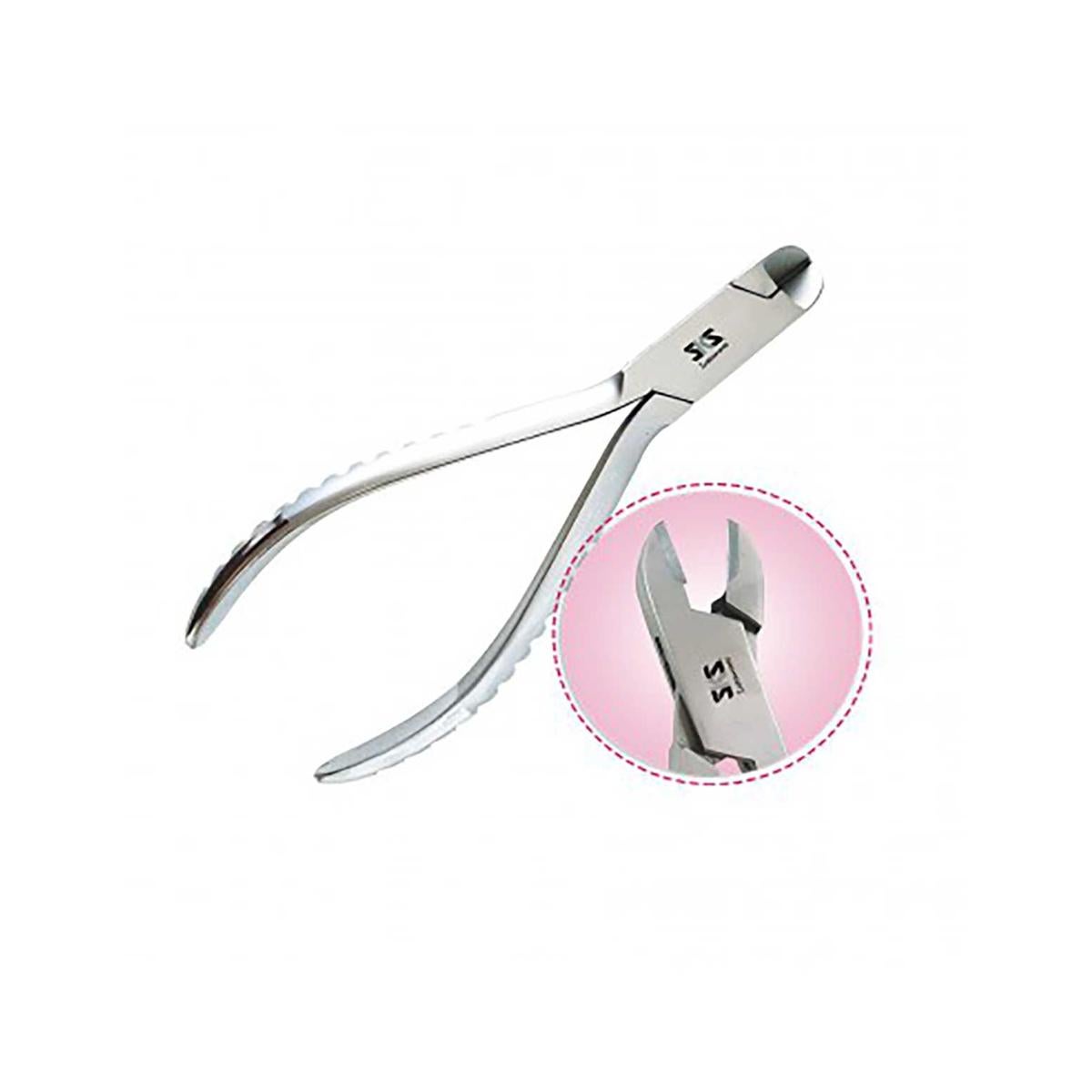Alicates de corte fabricados en acero inoxidable, diseñados para precisión en ortodoncia y prótesis. La parte activa está recubierta de tungsteno, garantizando durabilidad y resistencia, con una cabeza pequeña para acceder fácilmente a áreas complejas. Adecuados para cortar alambres cuadrados de hasta 0,7 mm y alambres redondos de hasta 0,5 mm con una longitud total de 13 cm.