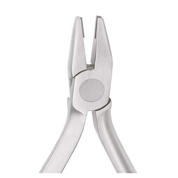 Alicate especializado para la creación de stops en alambres ortodónticos. Su diseño incluye un proceso de formación elíptica en la bisagra, que garantiza movimientos precisos y suaves. Fabricado con la aleación Immunity Steel, ofrece durabilidad y resistencia a la corrosión. Cuenta con un recubrimiento Perma Sharp y una terminación satinada que asegura una larga vida útil.