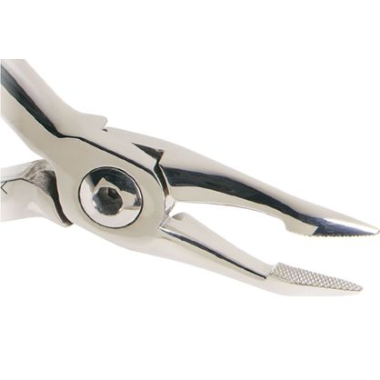 El ALICATE WEINGART FINO SIA es una herramienta de uso esencial para operaciones dentales complejas. Diseñado con una cabeza descentrada, permite un acceso fácil a áreas posteriores y linguales de difícil alcance. Sus puntas dentadas garantizan un ajuste seguro durante su aplicación, mientras que las mordazas curvas están diseñadas para evitar pellizcar los labios, asegurando mayor comodidad en su uso.