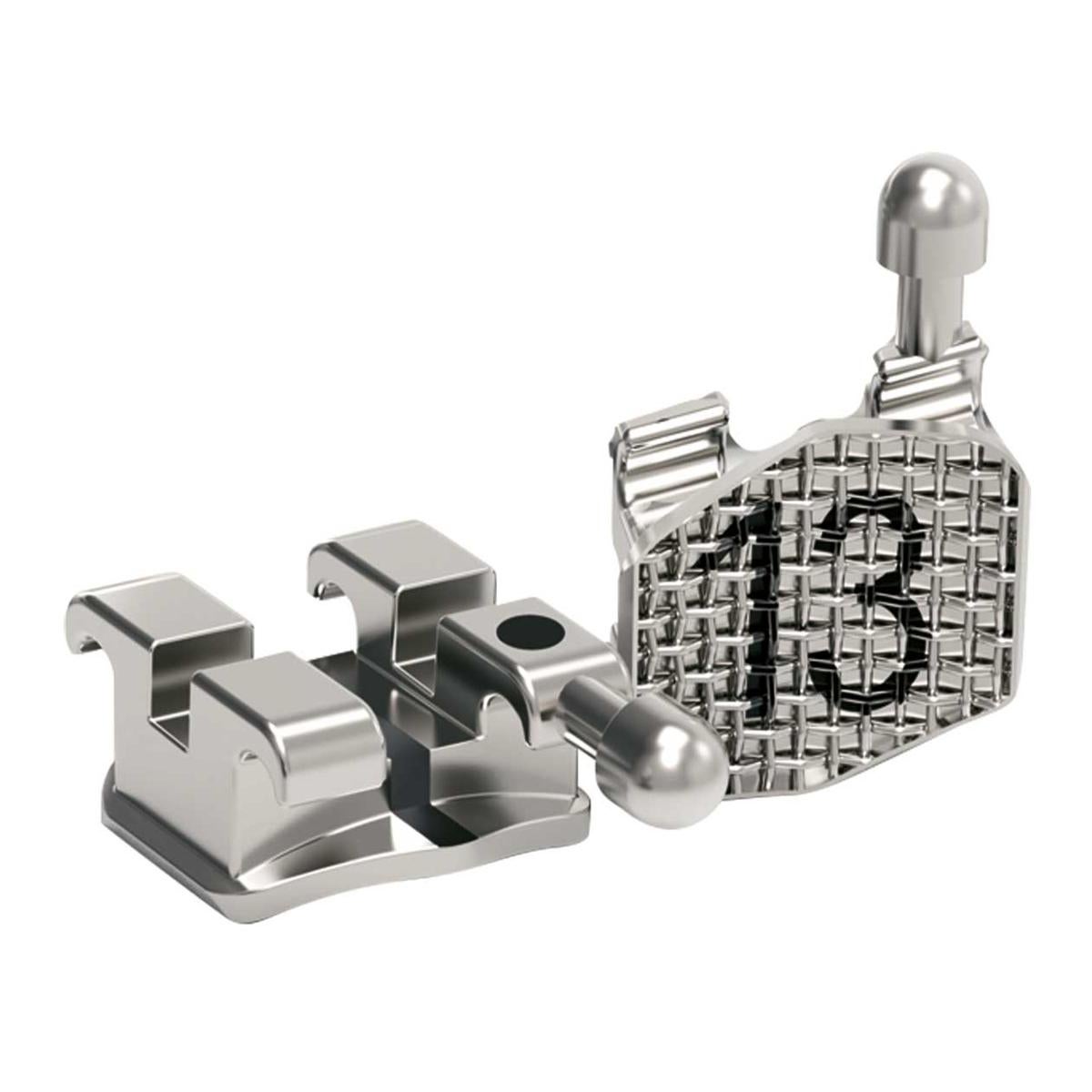 Los bráquetes mini están diseñados con una base anatómica de 80 Mesh, proporcionando una óptima capacidad retentiva con cualquier tipo de composite. Incorporan un gancho de bola integral utilizando la técnica MIM, específico para caninos y premolares. Para un posicionamiento preciso, la línea central entre las aletas está marcada con láser.