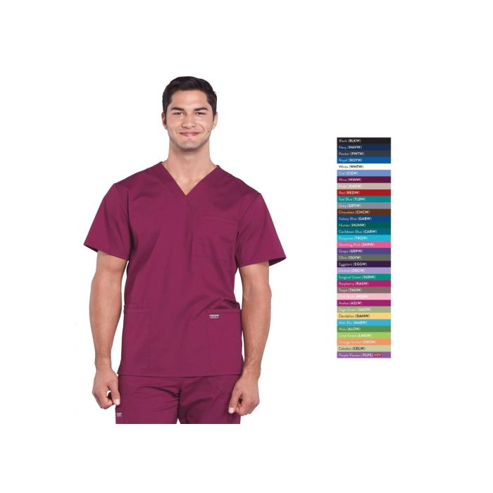 Esta casaca unisex de diseño cruzado presenta un cuello en forma de V. Está confeccionada con un 63% de poliéster, un 35% de algodón y un 3% de spandex, ofreciendo durabilidad y flexibilidad. Ideal para quienes buscan comodidad en su jornada laboral.