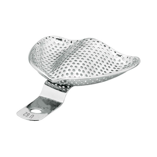Las cubetas perforadas desdentados 2806-U62 están fabricadas en acero inoxidable de alta calidad, garantizando durabilidad y resistencia a la corrosión. Diseñadas específicamente para pacientes desdentados, presentan un borde retentivo que facilita la retención de los materiales de impresión durante los procedimientos. Su diseño perforado permite una mejor fijación y estabilidad, ofreciendo resultados precisos.