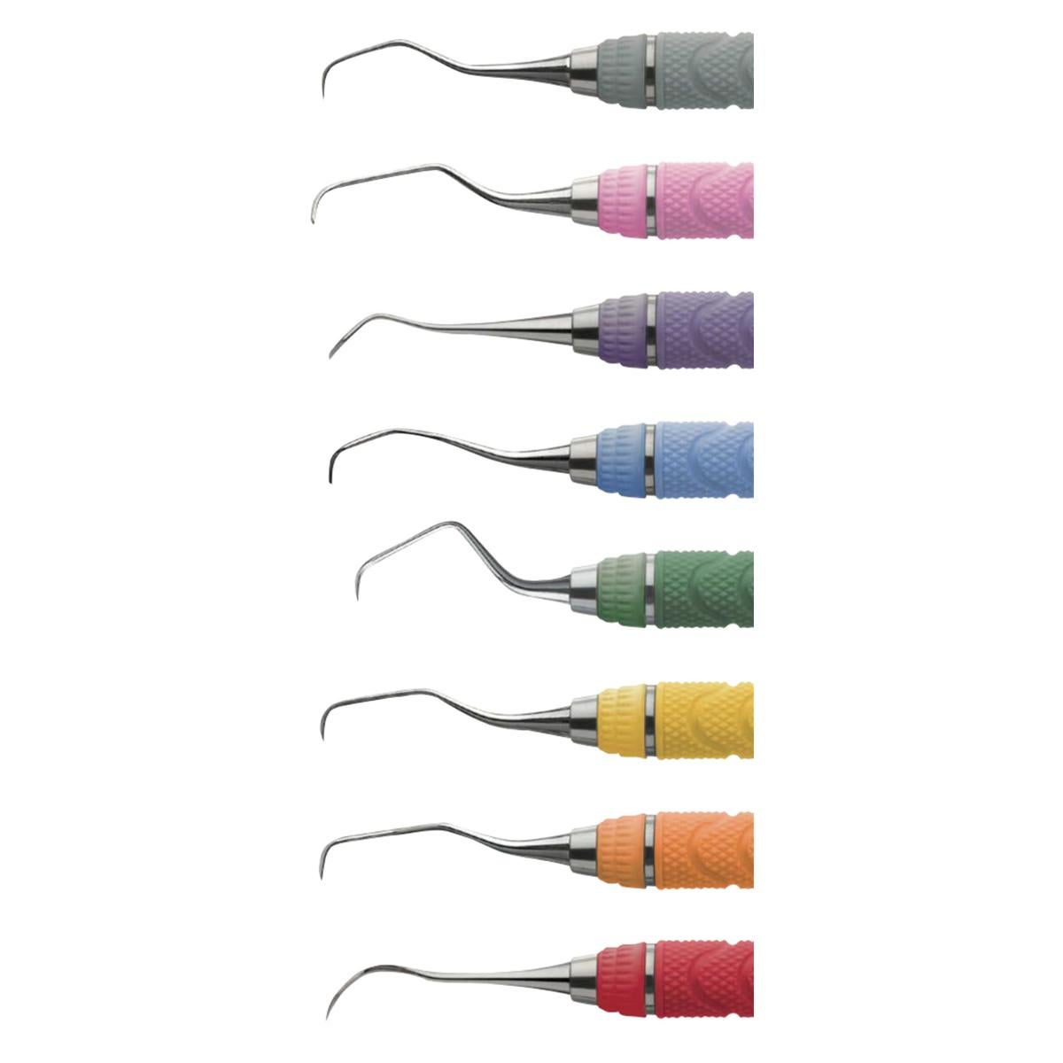 Las curetas con cabo de colores proporcionan precisión y eficacia en procedimientos periodontales. Fabricadas con tecnología avanzada, estas curetas están diseñadas para ofrecer longevidad y un rendimiento superior. Su cabo de resina permite una sujeción cómoda y segura, mientras que sus hojas afiladas garantizan un corte eficiente.