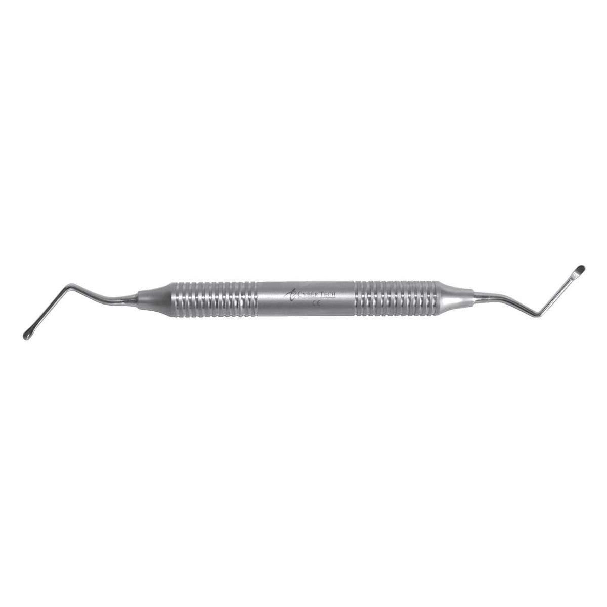 Utilice este instrumento para remover tejido granulatorio indeseado y limpiar alvéolos después de extracciones dentales, asegurando un entorno limpio preparado para la cicatrización óptima. Asegúrese de esterilizar adecuadamente antes de cada uso.