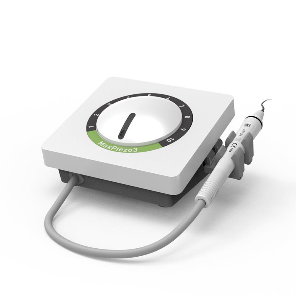 MaxPiezo3 es un escarificador ultrasónico diseñado para ofrecer un tratamiento eficaz y controlado en procedimientos de escalado y periodoncia, siendo una solución práctica y fiable para el uso diario en clínica dental.