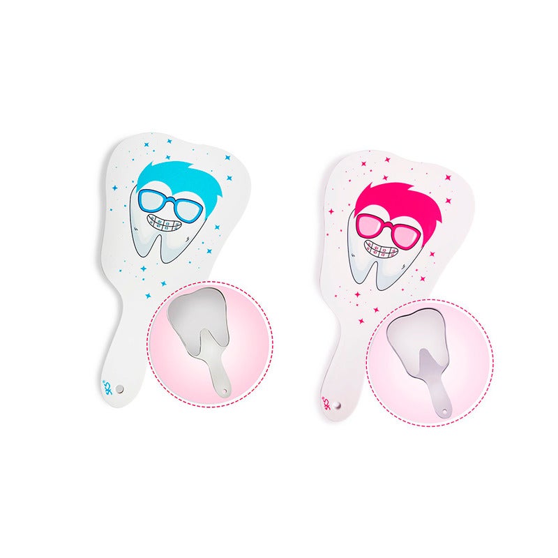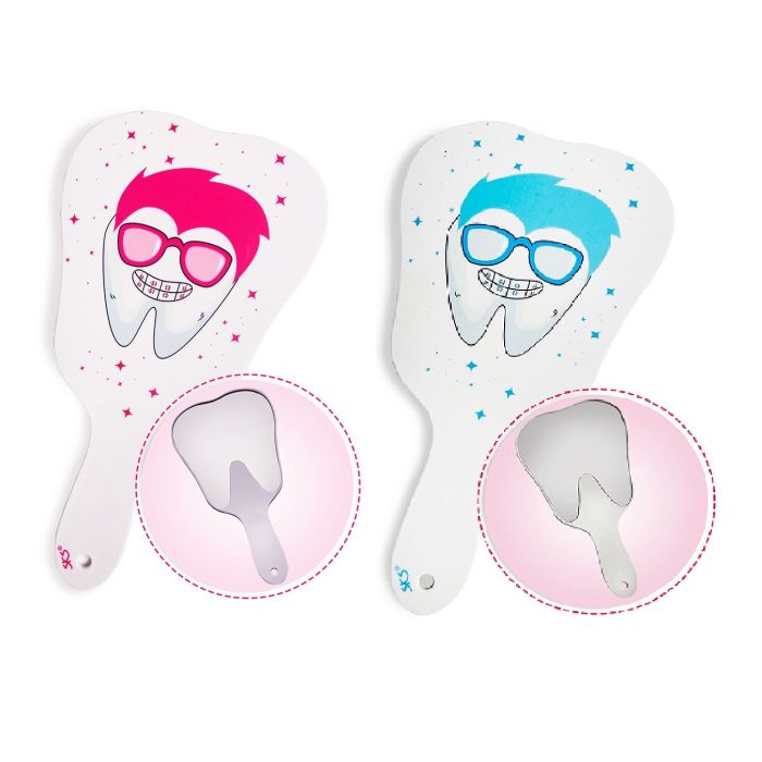 El espejo de mano, diseñado con forma de muela, es una herramienta precisa para mostrar a los clientes los resultados. Sus dimensiones son 14 cm de ancho por 24.5 cm de alto, lo que lo convierte en un accesorio perfecto para una visibilidad clara y efectiva. La forma distintiva de muela no solo optimiza la función práctica, sino que también mejora la experiencia del usuario.