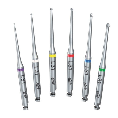 Fresa redonda con parte activa pequeña diseñada para ofrecer alta visibilidad en la cavidad de acceso gracias a su cuello largo y estrecho. Destinada a optimizar la localización de la entrada de los conductos y facilitar la preparación del istmo. De uso esencial en procedimientos de endodoncia donde la precisión y el acceso son vitales.
