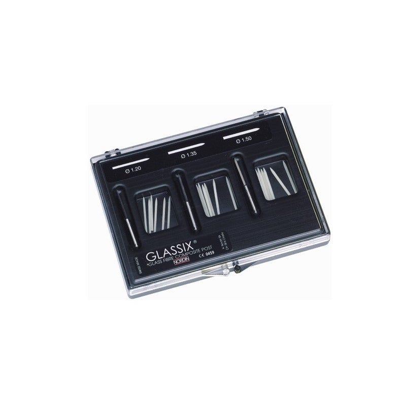 Postes de composite elaborados con fibra de vidrio radiopaca, diseñados para evitar fracturas debido a su elevada elasticidad. Su estructura permite minimizar la transmisión de tensiones y golpes a la dentina, mejorando la integridad del trabajo odontológico. Disponibles en un práctico estuche con 18 unidades.