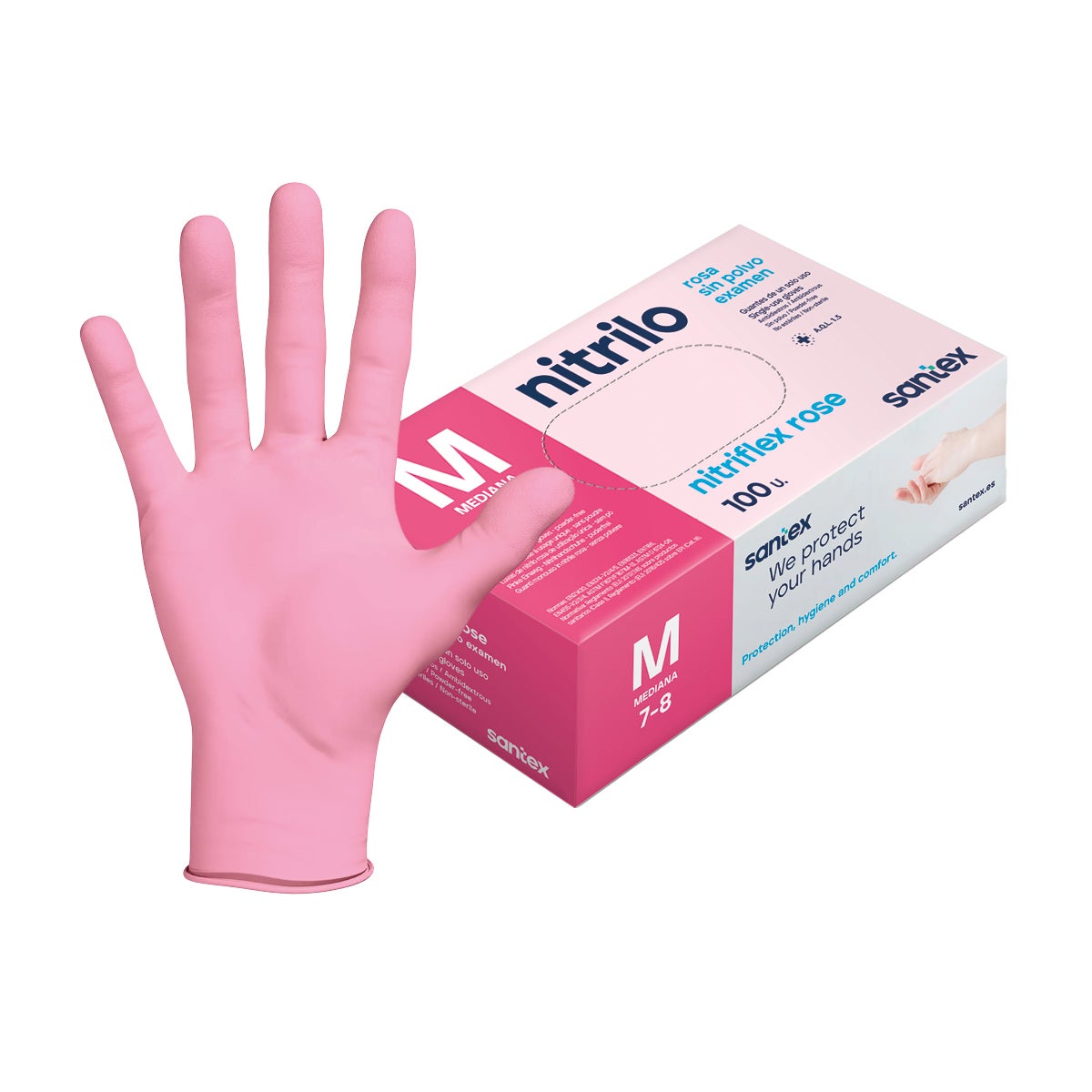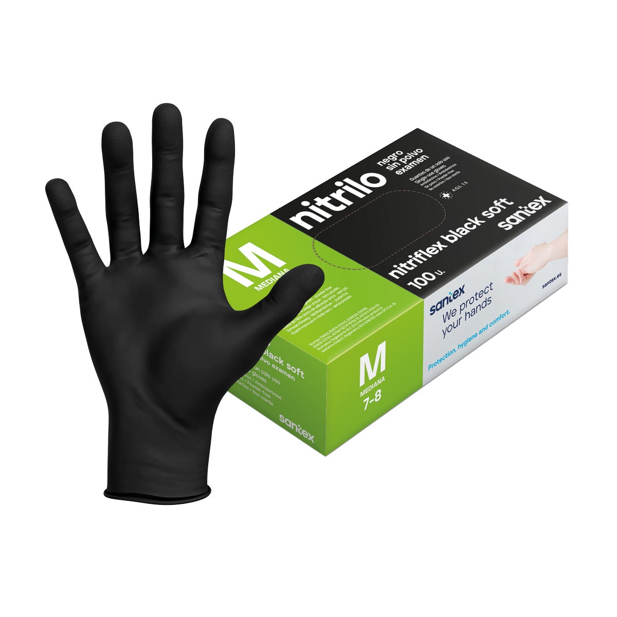 - Material: nitrilo sin polvo, libre de látex y hipoalergénico.