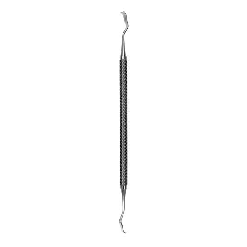 El instrumento S13K/TG es una herramienta de precisión diseñada para procedimientos periodontales que requieren el uso de una cureta y cincel. Su estructura presenta una forma doblada, permitiendo un acceso óptimo a las áreas de difícil alcance en tratamientos de raspado y alisado radicular.
