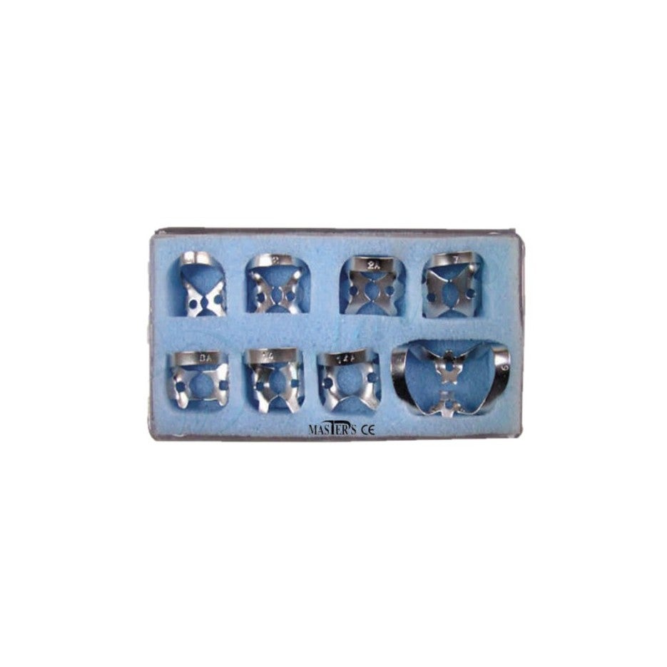 El kit de aislamiento en acero inoxidable incluye 8 clamps organizados para diferentes aplicaciones clínicas. Este conjunto versátil asegura una mejor sujeción y aislamiento del campo operatorio, optimizando los procedimientos.
