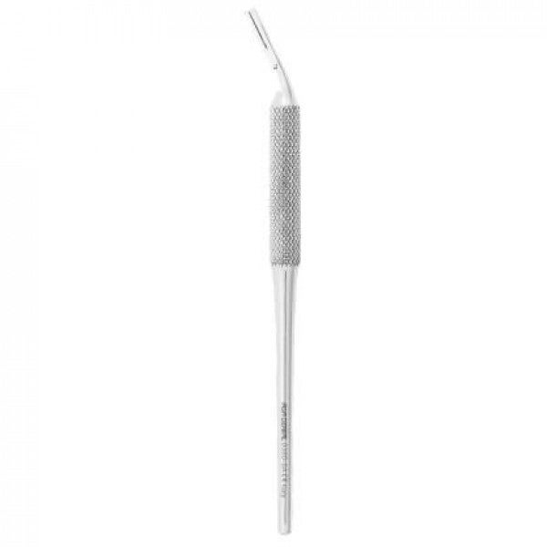 Instrumento quirúrgico diseñado para facilitar precisas incisiones en una variedad de procedimientos. Fabricado en acero inoxidable de alta calidad, este mango curvo de 14,6 cm proporciona un agarre ergonómico que mejora el control durante el uso. Su estructura es ideal para asegurar la durabilidad y resistencia en ambientes clínicos exigentes.