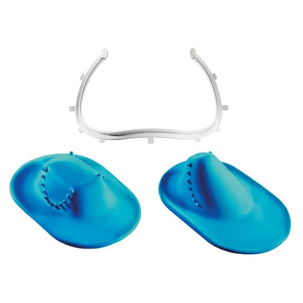 El kit ofrece un dique con forma curva anatómica, fabricado en goma para facilitar su colocación. Su diseño permite una excelente visibilidad y acceso, asegurando una respiración sin obstáculos. Destaca por su eficiencia, reduciendo el tiempo de preparación necesario.