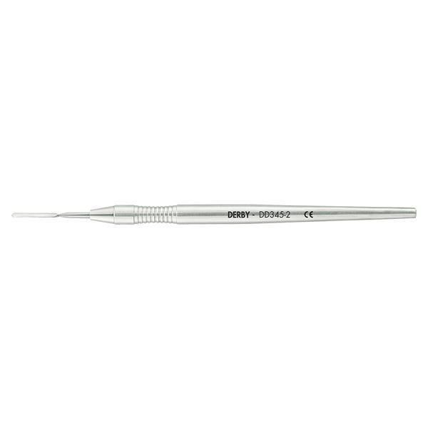 El PERIOSTOTOMO 345-2 - DERBY es una herramienta de precisión diseñada para facilitar la cirugía periodontal. Fabricado con acero inoxidable de alta calidad, ofrece una durabilidad óptima y una higiene superior. Su diseño ergonómico garantiza un manejo cómodo, permitiendo realizar movimientos precisos esenciales en procedimientos quirúrgicos. La terminación del instrumento asegura un acceso fácil a las áreas difíciles en la cavidad oral.