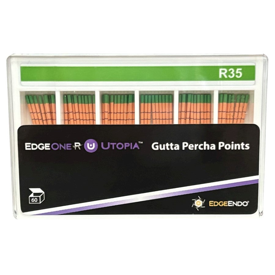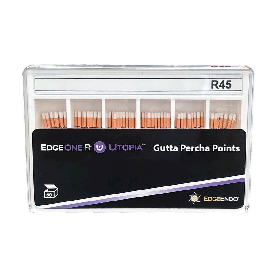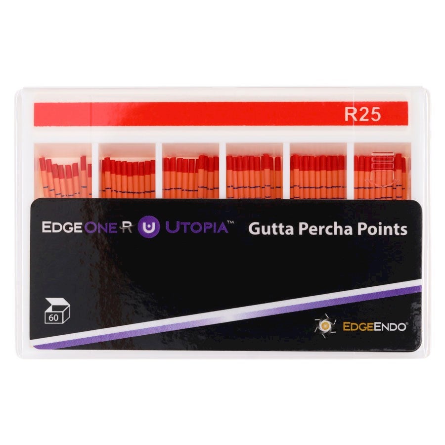 Las Puntas de GuttaPercha EdgeOne R Utopia™ están diseñadas específicamente para trabajar en perfecta integración con el sistema de limas EdgeOne Blaze Utopia™, ofreciendo una obturación rápida, precisa y segura. Su diseño y conicidad reproducen fielmente la geometría de las limas EdgeOne Utopia™, garantizando un ajuste apical óptimo y una adaptación perfecta a lo largo del conducto.