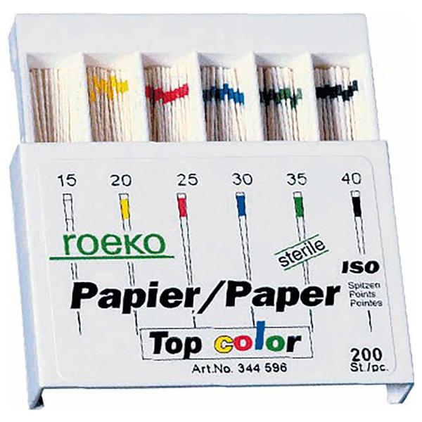Las puntas de papel reúnen las ventajas de las puntas blancas y de las coloreadas. Su sistema de codificación por color permite facilitar la identificación de tamaños, evitando confusiones durante el procedimiento. La parte blanca es ideal para comprobar la limpieza del conducto radicular, garantizando así un tratamiento impecable.