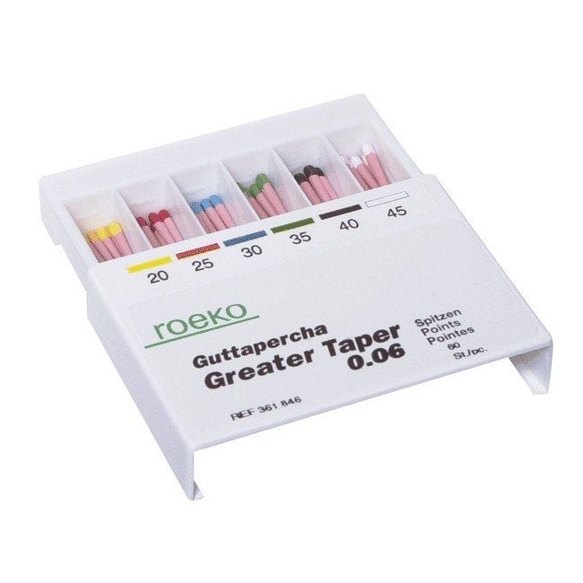 Las puntas de gutapercha son conocidas por su estabilidad, flexibilidad y característica radio-opaca. Diseñadas con una conicidad del 4%, están en línea con la codificación estándar ISO. Con una longitud de 28 mm, estas puntas aseguran compatibilidad óptima con los tejidos.