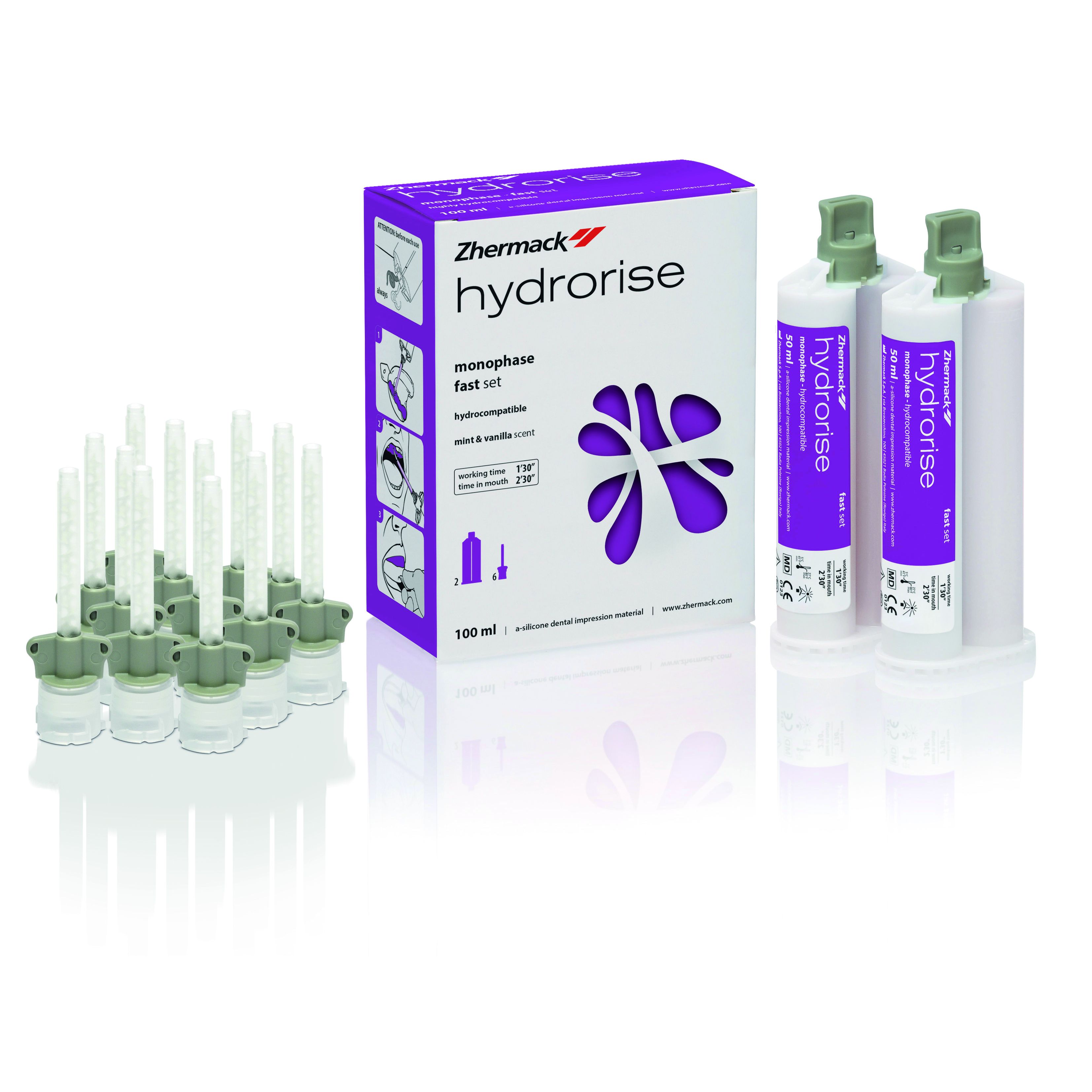 Hydrorise Monophase es una silicona por adición (vinil polisiloxano) de viscosidad media, disponible en proporciones de mezcla 1:1 y 5:1. Está especialmente recomendada para la técnica de una sola fase como material de viscosidad única. Su excelente precisión, elevada hidrocompatibilidad y estabilidad dimensional prolongada la convierten en una opción fiable y segura para impresiones de alta calidad.