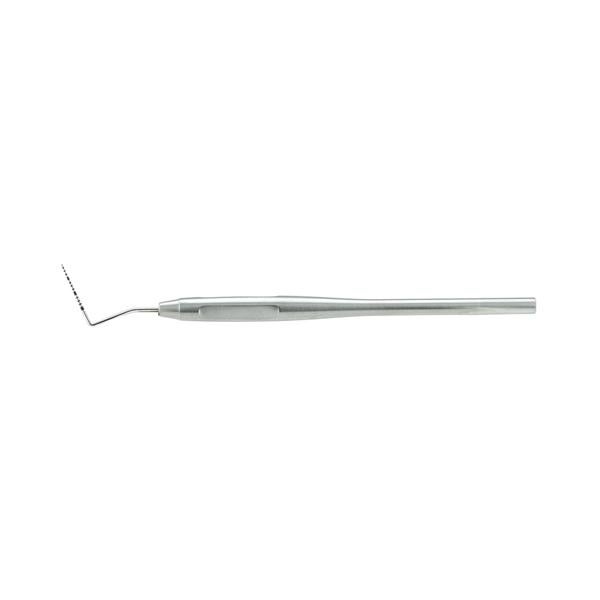 Sonda periodontal calibrada para la medición precisa de bolsas periodontales. Fabricada en acero de alta dureza, garantiza una resistencia excepcional a la abrasión y corrosión. Su mango ergonómico y ligero proporciona comodidad durante el uso prolongado.