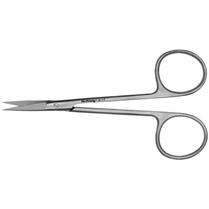 Tijeras con acabado en negro mate, diseñadas para minimizar la reflexión de la luz durante procedimientos quirúrgicos. Su diseño super-cut incluye una hoja afilada y un borde dentado que previene el deslizamiento de los tejidos, asegurando un corte preciso y seguro.